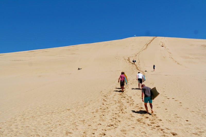 Next on the itinerary, sand dunes. The group was mainly made up of young people so all of us answered in unison when our guide asked if we wanted to go for a small sand dune or a big one. A big one it was! I was SO exhausted climbing up the sand dune, with the heavy surfboard underneath my arm under the scorching sun. It was especially difficult because the sand was so fine and smooth, your feet kind of just sink in. The ideal way to go up is to step on the footprints made by the people in front of you like temporary stairs but even so, it wasn't easy. HOWEVER, the sliding down part was incredible!!! You lean on your elbows and use your feet to steer (stick out your left foot to go right, right foot to go left, both feet to stop). I was afraid I would get sand into my mouth/eyes but nope! It was super fun! Despite the pain of going up again, I went up as many times as I could before we had to leave.